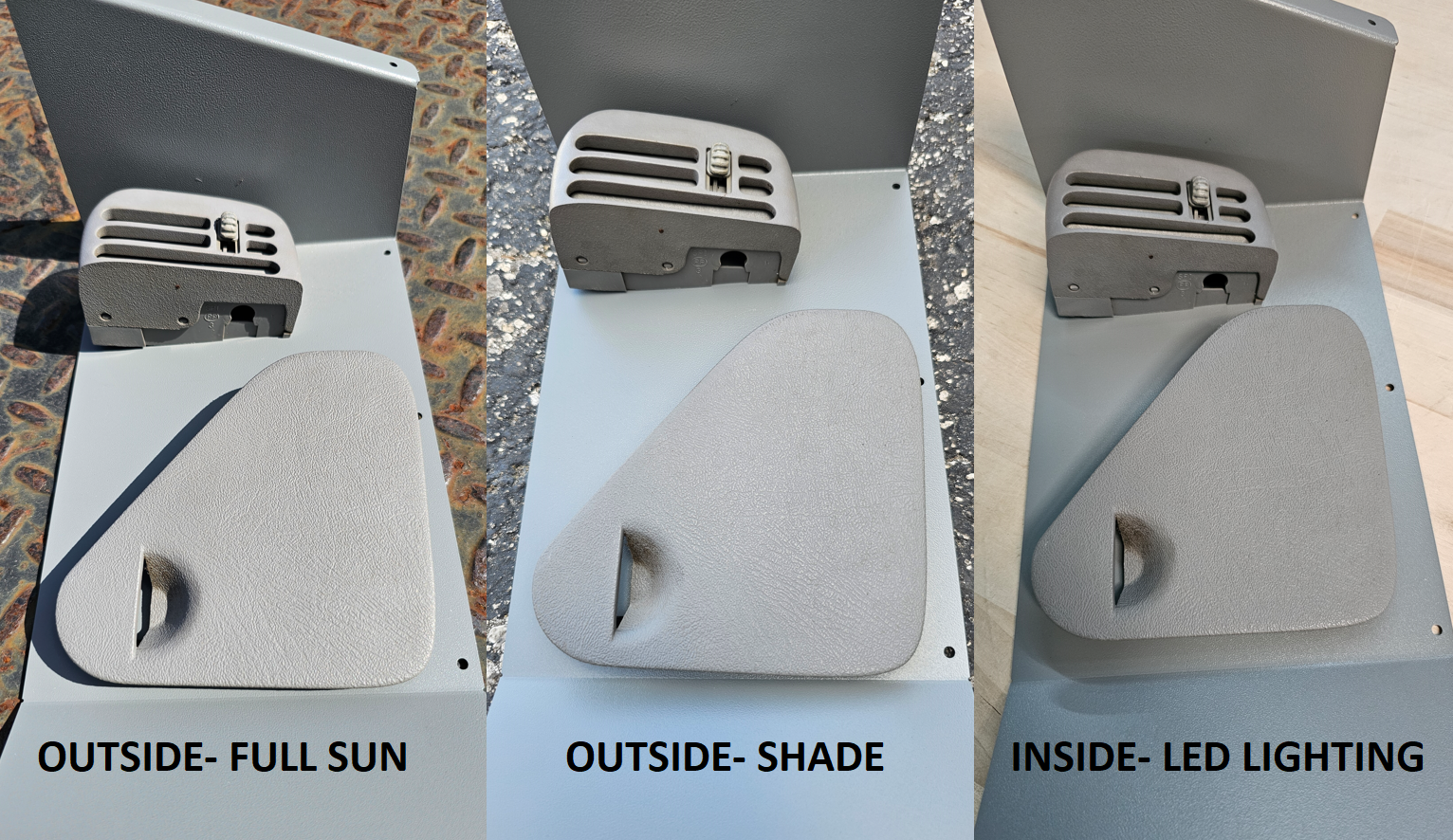 -Textured Matte Light Gray, Textured Matte Tan, and Textured Matte Burgundy powder coat note: The gauge bezel will be powder coated black (see reference photos).